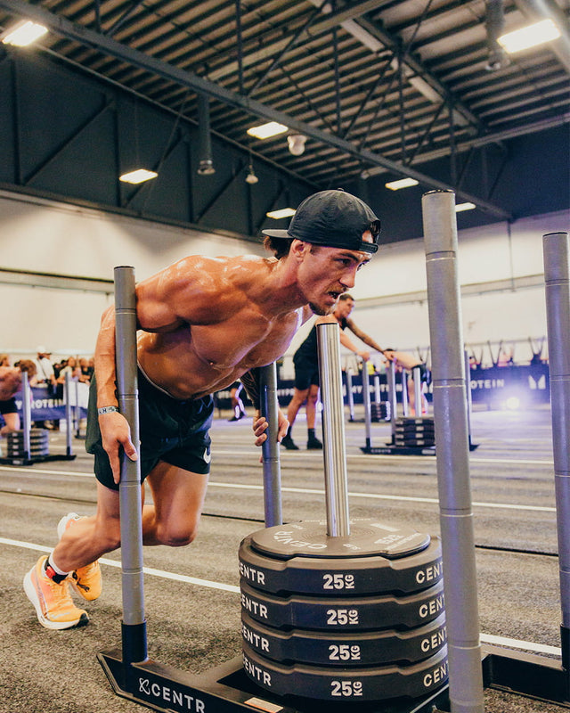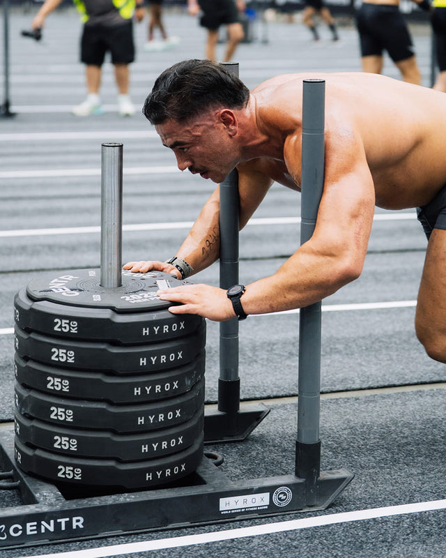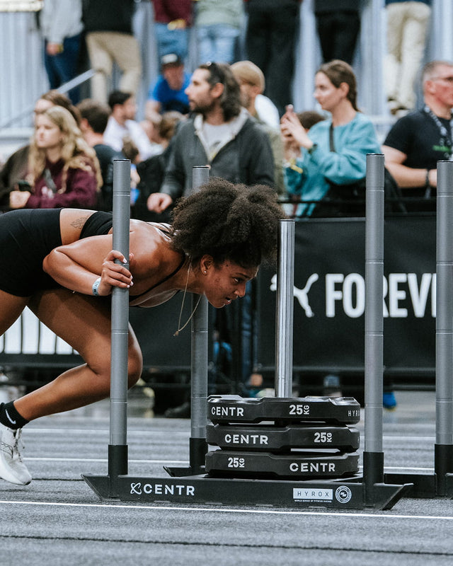 With the weight written on the edge of the plate, you can easily assess how much you’re pushing or pulling. CENTR is the Official Equipment Provider of HYROX. CENTR and HYROX are taking the World Series of Fitness Racing to the next level with the world's first ever competition equipment made for the sport. Engineered with durability and performance in mind for training at the gym, at home, and in competition.