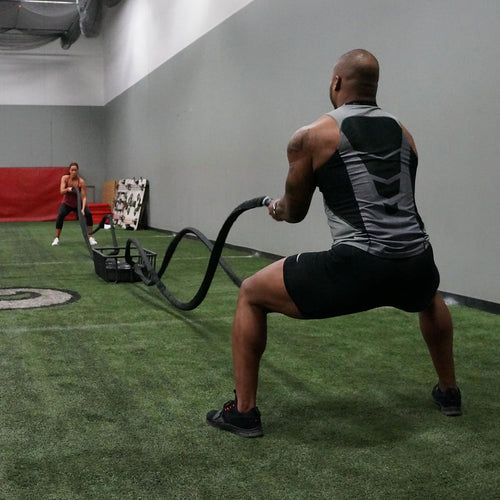 The XGASBRP4 bundle includes four of our Torque 1-1/2″ x 30′ nylon-covered battle ropes, paired with the group anchor station. To initiate small group battle rope training, all that's required is a bit of weight to secure the XGAS.
