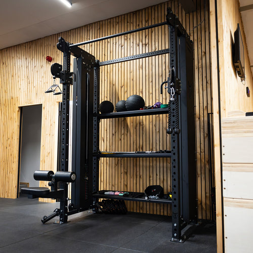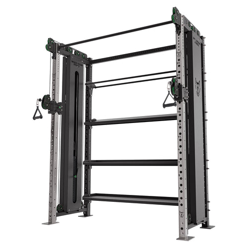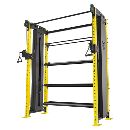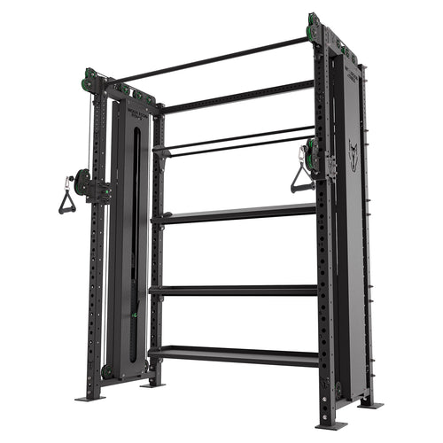 This cable Crossover is built on our Titan system, giving you maximum versatility in a small footprint. This Crossover can be bolt to our of Titan racks and features internall storage for Wall Balls and flat/angled shelving for Dumbbells and Kettlebells.