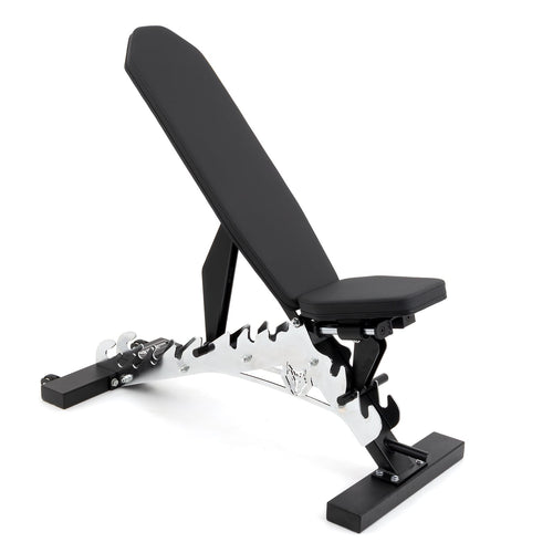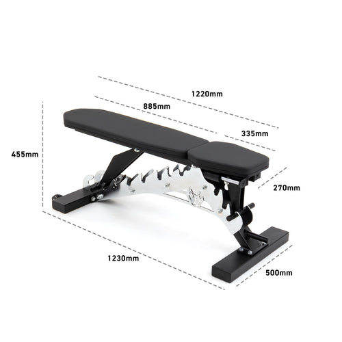 Crafted with a sleek chrome finish and a robust 5mm laser cut steel plate, this bench is built to withstand the rigors of high-use commercial gyms. Weighing in at 52kg, it boasts an impressive max weight capacity of 1000lb (454kg). With integrated handles and wheels, transportation is a breeze.